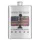 The product is a good size and came exactly as it was pictured. The lid is not attached to the flask, which could be dangerous on drunken nights... The print came out surprisingly well and looks very sharp. Would definitely recommend.