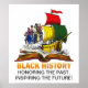 The image features an open book with waves emerging from its pages. On top of the waves is a ship with sails coloured red, yellow, and green. Standing on the ship are various people dressed in different historical and contemporary clothing, representing different eras and professions. Below the book, the text reads "BLACK HISTORY" in bold, gradient letters. Underneath that, in smaller text, it says "HONORING THE PAST, INSPIRING THE FUTURE." This powerful image symbolises the journey and contributions of Black individuals throughout history, emphasising the importance of remembering and honouring their past while inspiring future generations.