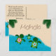 Digitally enhanced hand-drawn "Honu", sea turtles in Hawaiian. Features a baby boy sea turtle with Mummy & Daddy arriving to shore in a tropical beach scene. "Mahalo", "Thank You" in Hawaiian, is written in the sand. Matches MonkeyHutDesigns' baby shower invitations. Design #281.