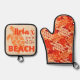 Honu Sea Turtle Hawaiian Tapa in Oranges Oven Mitt & Pot Holder Set