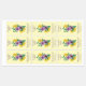 Cute little bee in a lavender flower with honeycomb and yellow background.