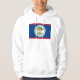 This hooded sweatshirt prominently displays the design of the Belizean flag, chraacterised by its royal blue background with a central red stripe adorned with the national coat of arms. The coat of arms includes a shield with symbols representing the country's origins and natural resources, supported by two woodcutters in front of a mahogany tree.