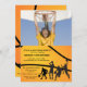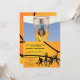 A stylish invitation for one who loves the game. The design features a basketball background with four silhouette players and a large photo window. The reverse is an oversized basketball image. The card is easy to customise with your wording, font, font colour and choice of six paper types.