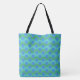 Ladies large Shoulder Bag in a pattern of blue and green arches. Primary colours are shades of turquoise, blue, and green..