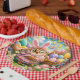 Who the owl set on a Easter looking backdrop really cute looking birthday plate