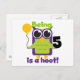Hoot Owl 5th Birthday t-shirts, bodysuits, tote bags, cards, stickers, and much more featuring a colourful green and purple owl and text that reads "Being 5 is a hoot!".