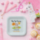 Celebrate your little bunny’s first birthday in the sweetest way! This whimsical paper plate features a cute bunny with balloons and carrots on a lush grass patch, all set against a soft pastel blue background. The playful text "Hop Hop Hooray" adds excitement, while "Our little bunny is turning one" in a delicate script font makes it extra special. Easily customisable to fit your celebration!