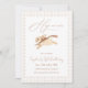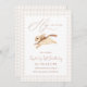 Playful spring bunny birthday design featuring a watercolor running rabbit with a flowing ribbon and soft neutral gingham border. Cute and elegant at the same time—perfect for a toddler birthday celebration and Easter-inspired party decor.
