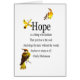 Quote by Emily Dickenson, "Hope is a thing with feathers that perches in the soul and sings the tune without the words and never stops at all."