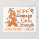 Hope Courage Faith Strength – Share these inspirational sentiments while advocating the cure for Kidney Cancer with captivating Kidney Cancer awareness t-shirts, apparel, gifts, and merchandise featuring orange and chocolate text and an eye-catching orange Kidney Cancer awareness ribbon entwined with coordinating flowers.