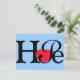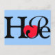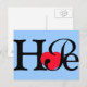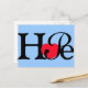 Spread the word of Hope with this typographic blue background postcard with a red heart for the letter o.