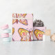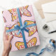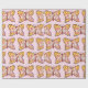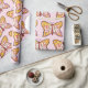 The inspirational word "Love" appears over the wings of a pink butterfly. The soft orange colours of the butterfly are complimented by yellow and pink hearts. This pretty butterfly wrapping paper is perfect for any gifting occasion.