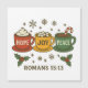 Great gifting idea for the Christmas season get togethers. Fun holiday magmet to pass out at party get-togethers, work or church! Cute design with colorful cups of Hope Joy and Peace filled with cocoa and topped with whipped cream, marshmallows and a candy cane. Surrounded by golden brown snowflakes and scriptural message romans 15:13 "Now may the God of hope fill you with all joy and peace in believing...".