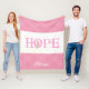 A kitty wrapped in a pink ribbon sits in the 'o' of the word Hope in pink on this cosy fleece blanket. A perfect gift to bring comfort to someone special. Personalise with ANY name for an even more unique gift.