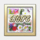 Magnet with the word HOPE written on a bouquet of flowers with a gold coloured frame It is artistically created.