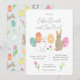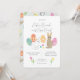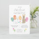 Cute illustrated invitation for Easter brunch and egg hunt: with bunnies, painted eggs and tulips and spring flowers drawn by the store owner, Mònica Roca on one side. On the other side an adorable Easter design with bunnies and other Easter motifs.