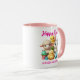 Add a lighthearted touch to Easter with this colourful two-tone mug, which features an adorable AI-generated bunny, lamb, and pair of chicks painting Easter eggs in a spring meadow, accompanied by the punny expressions "Hoppy Easter" and "Blessed may ewe be!" Customise messaging as desired.