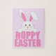 Hoppy Easter Cute Bunny Pun Pink Jigsaw Puzzle