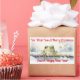 A cute frog in winter clothes sitting on a snow covered log, snow all around, watercolor. Text can be changed.