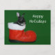 Black otter bunny rabbit in a Santa boot wishes you Hoppy Holidays. Text may be changed or removed with the CUSTOMIZE button.