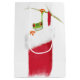 Tree frog inside of a Christmas stocking hangs from a branch in this original artwork. Make someone hoppy with this cute gift bag.