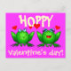 Hoppy Valentine's Day! Cute green cartoon frogs bringing you cheerful wishes of love and hoppiness.