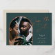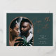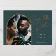 An elegant save the date design with a unique layout, this chic card features a vertical photo in an arched shape on a rich forest green background, with "save the date" in rose gold foil hand lettered script typography. Personalise with your names, wedding date, and location, and add additional details to the back. A stunning design in a lush colour palette for announcing your wedding.
