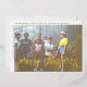 A gold foil greeting - merry christmas - is on top of the photo in a large, trendy script font. The photo is off-centre, and the family signature wraps around the white border. A gold border accent is also included. ---