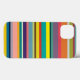 This phone case has a design of horizontal stripes in shades of blue, green, brown, purple, red, yellow, orange, and pink.