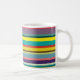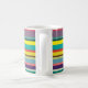 This mug has a design of horizontal stripes in shades of blue, green, brown, purple, red, yellow, orange, and pink.