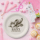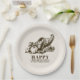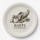 Celebrate Thanksgiving this year with this unique paper plate. It features a vintage style illustration of a horn of plenty filled with fruits and vegetables. A classic symbol of a Thanksgiving feast. It sits against a light tan backdrop with your details in a similar walnut brown colour to the illustration.