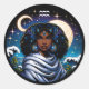 A fun horoscope sign Aquarius sticker with a pretty celestial illustration of a water bearer African-American woman in front of stars and a full moon/