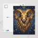 A mystical golden Ram Aries Astrology sign postcard with a metallic gold ram and a mystical starry night background.