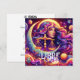 Ai art depicting a beautiful colourful woman surrounded by purple, pink and orange scales, planets, stars, moons and swirling colours. Horoscope sign Libra zodiac celestial art. Libra traits and dates.
