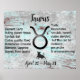 Horoscope Sign Taurus Bull Traits and Dates grey and teal marble poster.