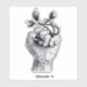 Horror art sticker with an ink drawing depicting a hand in fist with sharp black fingernails and a black ring with evil monsters with sharp teeth. Fun creepy creepy illustration with a gothic feel.