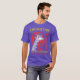 I give wanted to give this a 4 instead of a 5 because these Basic DARK T0shirts run unexpectedly SLIM or Narrow. Which is great if you do not have a potbelly, but I have a paunch. It isn't the shirt's fault that I've got a beer belly. The design and shirt itself is a quality cotton shirt. The color is more of a deep purple, but still a very pretty color. The Basic DARK T-shirts run a bit SLIMMER than the Basic Ts. The neck is a fraction narrower (or seems to be narrower) also. I'm a paunchy middle-aged woman and my neck is 12 inches (31cm) thick and the neckline fell about the same as in the photo of the man, and I had the desire to tug it a bit. So if you're a thick necked man or like loose shirts, be aware these are slimmer shirts. Once I get rid of my lockdown paunch it'll look great. The shirt washed well in cold water with no apparent bleeding. We don't have a dryer, so it hung dry. Did not shrink. Love the colors and the design. The design looks smaller on my shirt than it does on the model on-line. But still, it looks good on the shirt. The printing looks as it does on the model, just the size seems fractionally smaller. Washed garment in cold water, hung dry and design appeared unaffected.