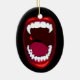 Horror picture show poster style art, vampire teeth, fangs, sharp white elongated canines, a bright red drop of blood, red lips. The background colour is set to black but you can use the customise feature to change it if you like (customise-edit-background). This ornament is perfect for hallowe'en parties, haunted house party, trick or treat halloween decor, spooky special occasions, b horror movie nights, ghoulish gatherings, vampire festivals or whatever your heart desires. Original shlock horror movie art by M Chaume.