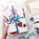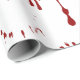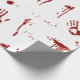 Halloween party gift wrap printed with bloody red handprints, dripping blood and bloodstains