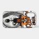 A creepy scarecrow with a skull face stands beneath the dripping text "HORROR SCRATCH". This spooky design, featuring an orange moon background, is perfect for Halloween enthusiasts and fans of all things terrifying and macabre.