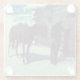 Glass Coaster featuring Frederic Remington’s oil painting The Belated Traveller (1906). A cowboy knocks on a cabin door in the midst of a winter snow. He holds the reigns to a brown horse by his side. A perfect gift for horse lovers and the Old West.