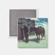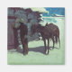 Magnet featuring Frederic Remington’s oil painting The Belated Traveler (1906). A cowboy knocks on a cabin door in the midst of a winter snow. He holds the reigns to a brown horse by his side. A perfect gift for horse lovers and the Old West.