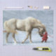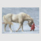 A beautiful image of a white horse being led by a girl in a red coat during a snow storm adorns this tissue paper. Perfect for yourself or as a gift.