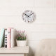 Great quality clock and very well made. Just what I was looking for to finish my hall off. Looked in loads of other websites and eventually found exactly what I was looking for at Zazzle. Designe and colour is perfect. I just love it. Bought the medium size and fits well for where I was placing it.