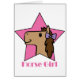 A cute horse design girls will love. A cute brown horse head is in the centre of a pink star and the words, Horse Girl written in a pink font is underneath the design. Girls who love horses will love this design.
