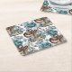 Horse girl cowgirl pattern turquoise floral square paper coaster