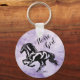 This is a Unique "One of a Kind" Horse Keychain! It Features a Black Galloping Horse Silhouette on a Purple and White Background and the
