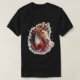 I give wanted to give this a 4 instead of a 5 because these Basic DARK T0shirts run unexpectedly SLIM or Narrow. Which is great if you do not have a potbelly, but I have a paunch. It isn't the shirt's fault that I've got a beer belly. The design and shirt itself is a quality cotton shirt. The color is more of a deep purple, but still a very pretty color. The Basic DARK T-shirts run a bit SLIMMER than the Basic Ts. The neck is a fraction narrower (or seems to be narrower) also. I'm a paunchy middle-aged woman and my neck is 12 inches (31cm) thick and the neckline fell about the same as in the photo of the man, and I had the desire to tug it a bit. So if you're a thick necked man or like loose shirts, be aware these are slimmer shirts. Once I get rid of my lockdown paunch it'll look great. The shirt washed well in cold water with no apparent bleeding. We don't have a dryer, so it hung dry. Did not shrink. Love the colors and the design. The design looks smaller on my shirt than it does on the model on-line. But still, it looks good on the shirt. The printing looks as it does on the model, just the size seems fractionally smaller. Washed garment in cold water, hung dry and design appeared unaffected.
