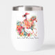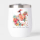 Thermal wine tumbler with a lovely girl on horseback surrounded by flowers and the theme Just a Girl Who Loves Horses.