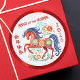 “Happy New Year” red typography in Chinese and a stunning visual of a graphic multicolor cut paper horse, flowers and cloud overlay a traditional Asian light gray circle pattern and brushed red faux foil border. Feel the warmth and joy of the holiday season whenever you use this stylish yet modern, personalized 2026 Chinese Lunar New Year of the Horse sticker. Choose from a round or a square shape. Makes a great addition to all your correspondence, red envelopes, and gifts.